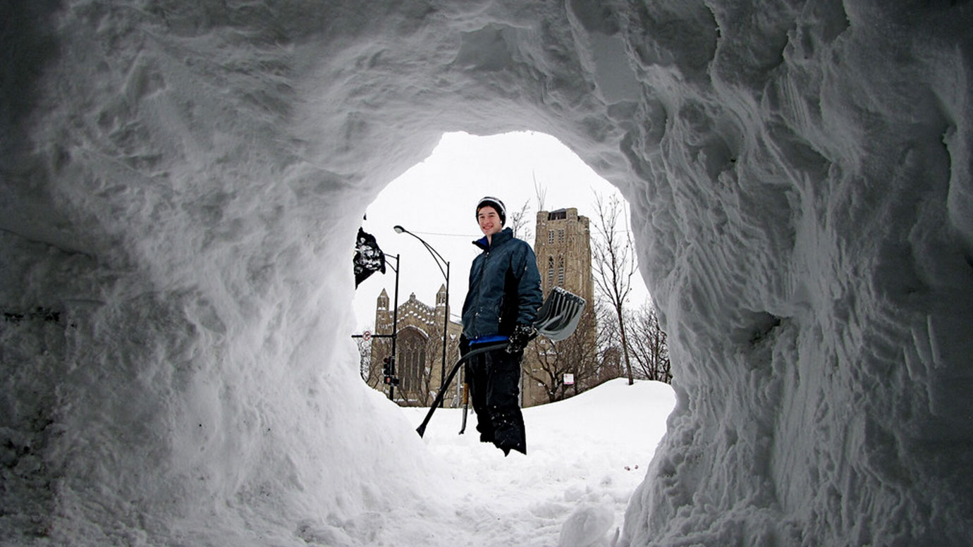 At the University of Chicago, classes were cancelled for two days as winds as fast as 70 mph created shoulder-high snowdrifts. UChicago crews worked 15- to 17-hour shifts to remove the snow from campus thoroughfares before spreading 15 tons of de-icing material to keep the pavements clear. But despite the harsh conditions, students came together and brought the Quads to life with snowball fights as they built igloos, tunnels and snowmen among the drifts.